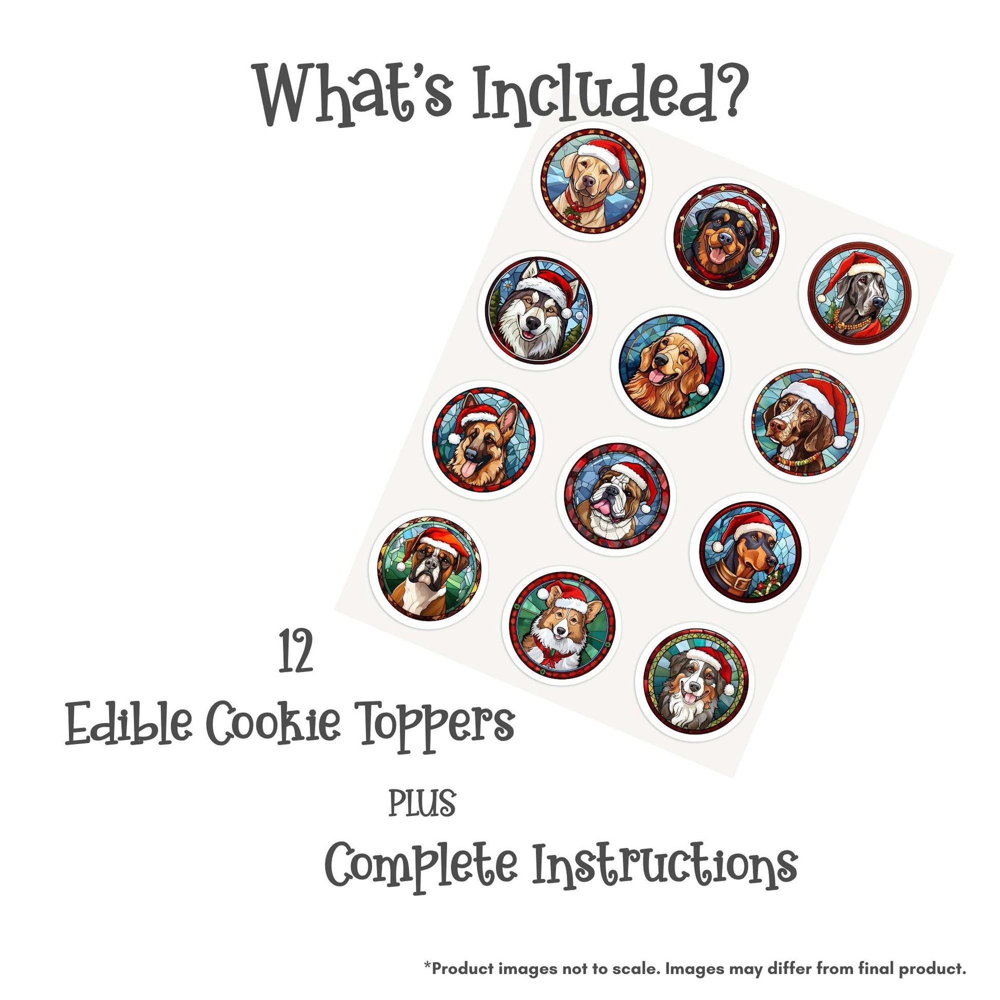 2 Inch Round Christmas Stained Glass Large Dogs Edible Cookie Toppers